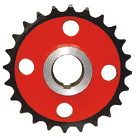 輸送設(shè)備驅(qū)動裝置鏈傳動中,采用大小鏈輪傳動進一步降低輸送設(shè)備的鏈條速度,大鏈輪常用齒數(shù)有:32、36、42、46、52;小鏈輪常用齒數(shù):17、19;根據(jù)需要選用單排齒、雙排齒及多排齒。